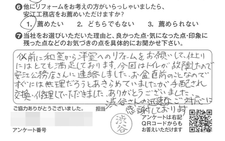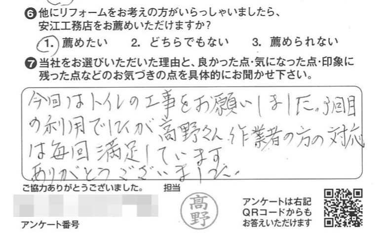 また、工事終了後、住まわれてから気づかれた不具合がないか、アフターメンテナンスはがきをお送りしております。