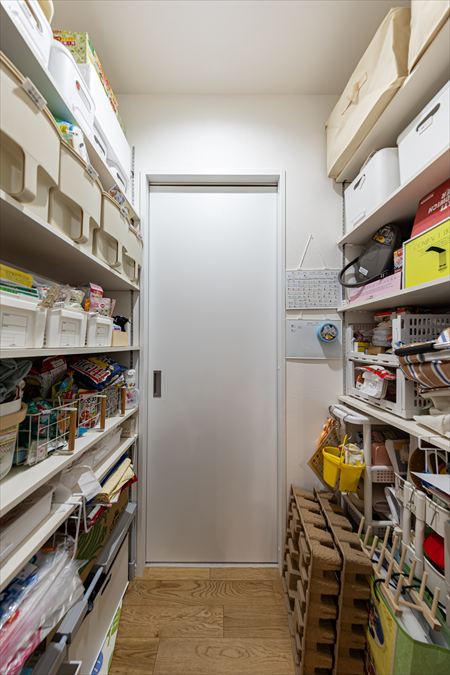 また、キッチン・パントリー・ランドリー・洗面コーナー・LDKと回遊できる短い動線で、