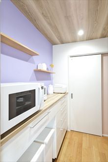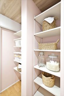 背面収納やパントリーには気分が上がるお気に入りのクロスをお選びいただきました。