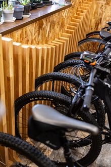 自転車工房はインテリアに拘り、タイヤ幅の違う自転車に合わせ、