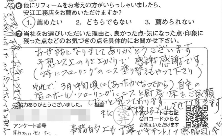 また、工事終了後、住まわれてから気づかれた不具合がないか、アフターメンテナンスはがきをお送りしております。