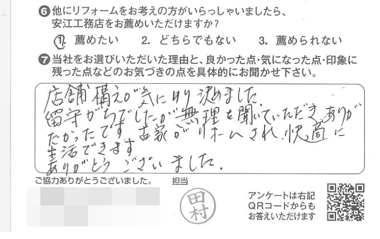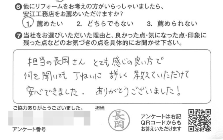また、工事終了後、住まわれてから気づかれた不具合がないか、アフターメンテナンスはがきをお送りしております。