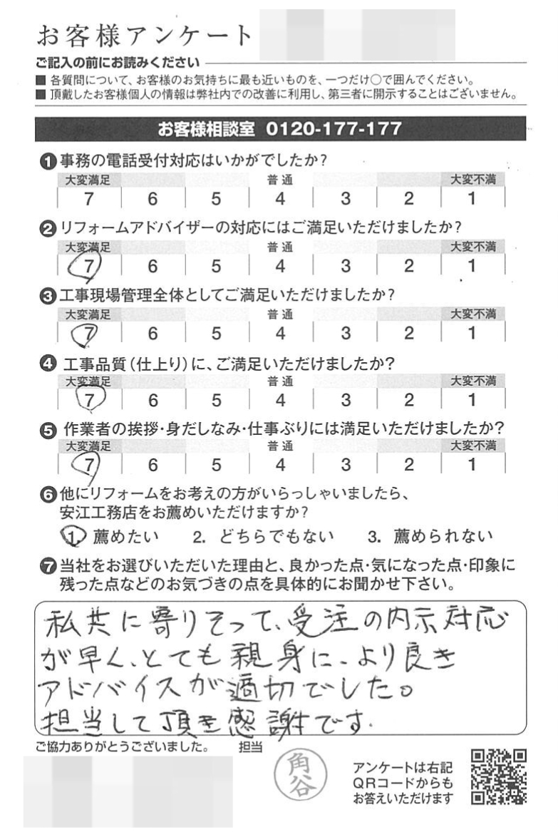 私共に寄り添って受注の対応が早く、とても親身に、より良いアドバイスが適切でした。担当して頂き感謝です。