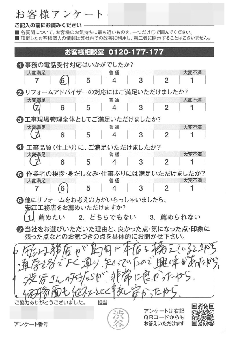 渋谷さんの対応が、非常に良かったから。価格面も他社と比較し安かったから。