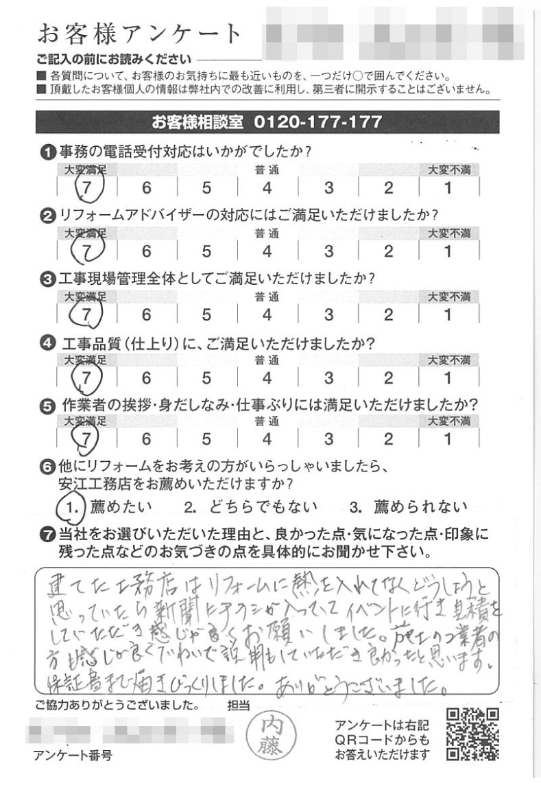 建てた工務店はリフォームに熱を入れてなくどうしようと思っていたら新聞にチラシが入っていてイベントに行き見積をしていただき感じが良くお願いしました。施工の業者の方も感じが良く丁寧で説明もしていただき良かったと思います。