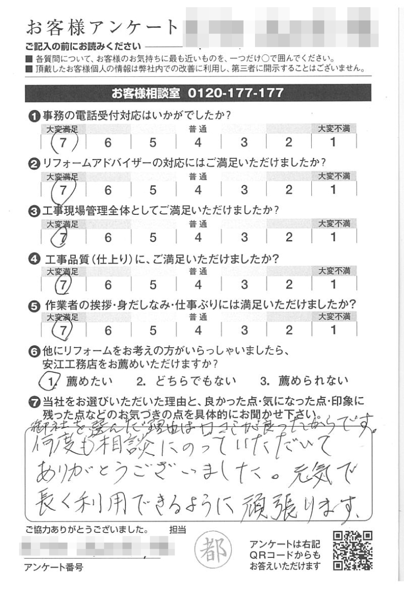御社を選んだ理由は口コミが良かったからです。何度も相談にのっていただいてありがとうございました。
